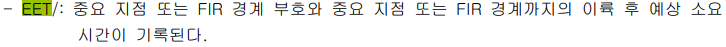 7) 보충 정보 • Endurance E/ 다음에 총 탑재 연료로 운항이 가능한 시간 및 분을 4 자리 수로 기록한다.