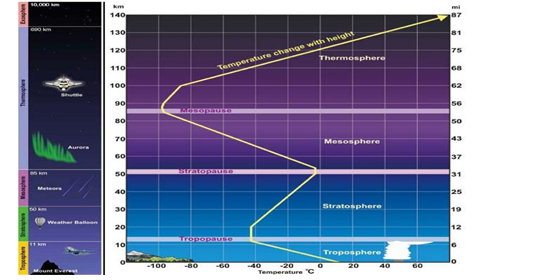 고도가 상승할수록 기온이 감소,