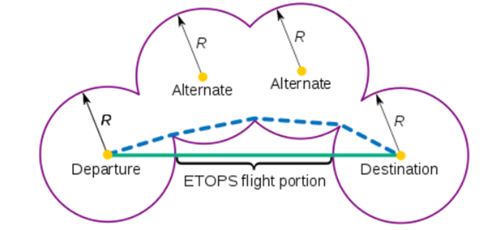EDTO란 기존에 존재하던 60분 rule( 2 ENG 경우, 1 ENG fail 시 항로상 Alternate가 특정조건(무풍, ISA, 1개 ENG 순항속도) 으로 60분이내 거리에 있어야 했던 것을, 안정성이 검증됨에 따라 운항의 효율을 높이고자 특정 허가를 받은 항공기에 한하여 60분 이내의 거리를 늘릴 수 있는 규정. ETOPS가 적용됨에 따라 아래 그림과 같은 항로가 그려짐. -> Extended-range Twin-engine Operation Performance Standard 규정(ETOPS) 사실상 항공기의 회항은 ENG의 개수 문제보다는 갑작스러운 환자나 기상, 화재 등 다른 요인의 영향이 더 커서 ETOPS의 규정을 확대함. 기술이 발전함에 따라 180분, 300분까지도 허용, 지역..